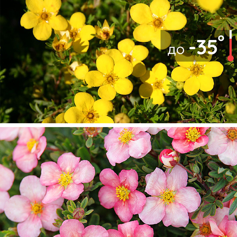 Лапчатка кустарниковая — многолетний листопадный декоративный кустарник высотой в зависимости от сорта от 30 см до 1,5 м. Имеет большое количество разновидностей, отличающихся формами растения и окрасом соцветий - они могут быть желтыми, кремовыми, красными, белыми, ярко-розовыми, оранжевыми и других оттенков, часто цветет очень долго, с мая до октября.